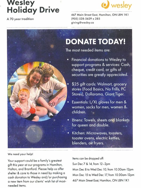 As we enter this season of generosity, we are reminded of the many who are in need. We invite you to help us spread the joy of Christmas by supporting several local initiatives:
